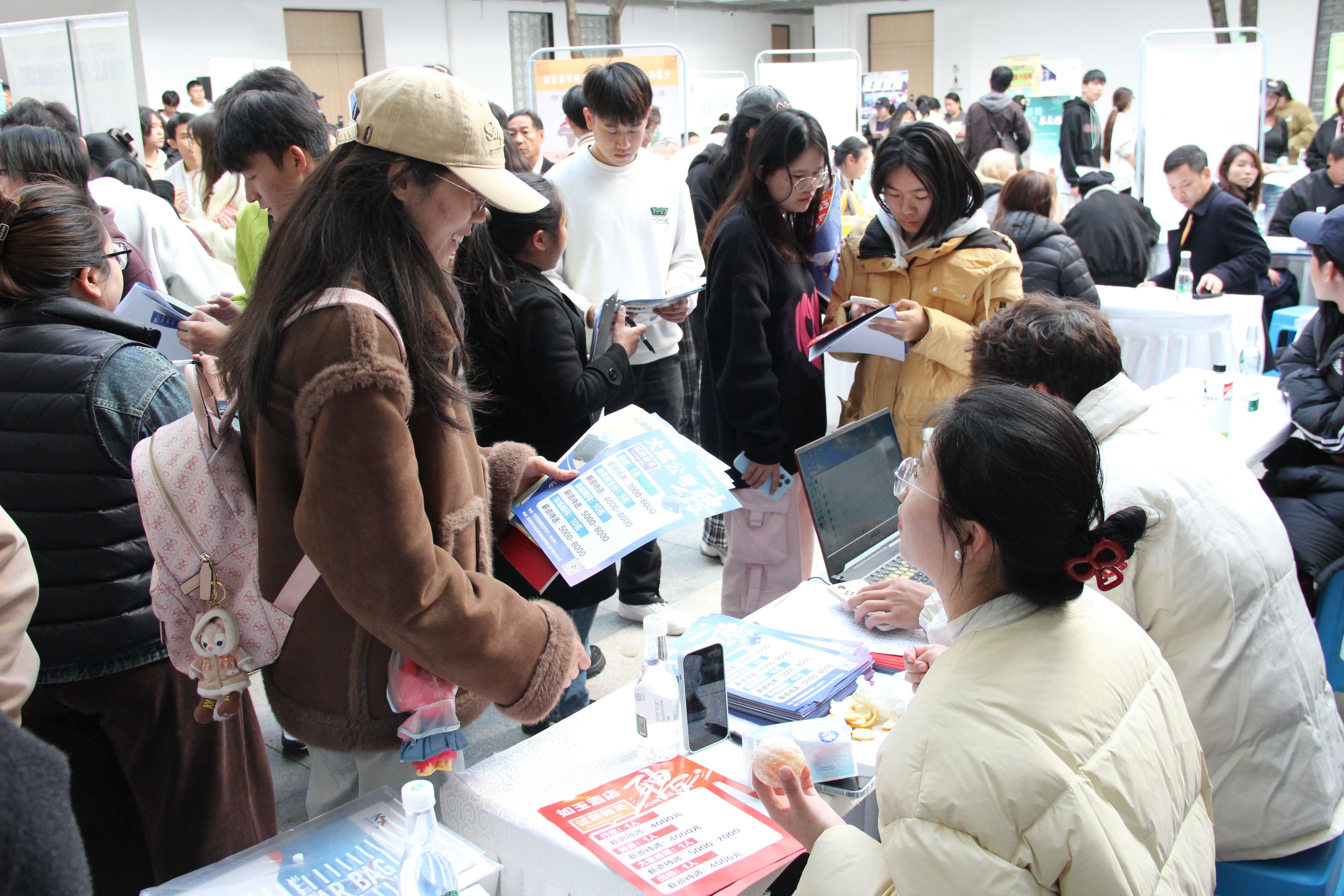 本场活动由就业工作处主办、永利3044集团官网承办,坚持“小而精、专而优”理念,面向艺术设计、经济管理、园林园艺、生物食品、机械交通、大数据、外国语、材料化工、林学、文法、土木、体育等核心专业定向邀约,提供岗位600余个、招聘规模900余人,吸引800余名毕业生入场洽谈,现场投递简历踊跃。
