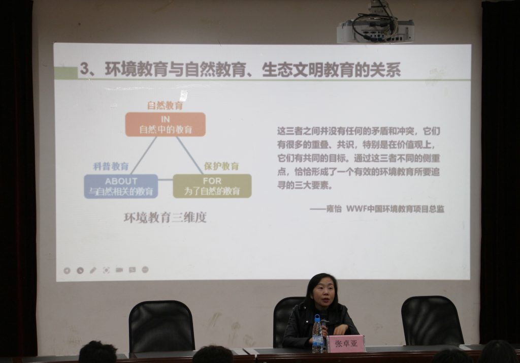她指出,公司已成为首家“中国人与生物圈”自然教育志愿者联盟高校、云南省首家申报成功“全国自然教育公司”的高校;成功申报了全国林业科普基地、云南省生态文明教育基地、云南省科普教育基地、云南省生态文明教育理论与实践研究基地等平台;设置了国家高原湿地中心公众教育部、云南生物多样性研究院科普宣教培训部、标本馆、地理与生态旅游公司研学旅行与自然教育研究中心等,形成了多元化的自然教育综合平台。应当通过环境教育解决环境问题,呼唤多学科、创新和长期的努力在践行新发展理念、构建新发展格局、推动高质量发展中的重要作用。正确理解环境教育与自然教育、生态文明教育的关系以及自然教育的四个要求。 她说,绿水青山就是金山银山,人因自然而生,人是自然的一部分,人与自然是命运共同体,大自然是人类与生俱来的老师。面对近半个世纪以来频发的自然灾害、环境事件和气候变化问题,面对建设美丽中国的历史责任,面对人的自由而全面的发展,中国的自然教育应运而生、乘势发展。