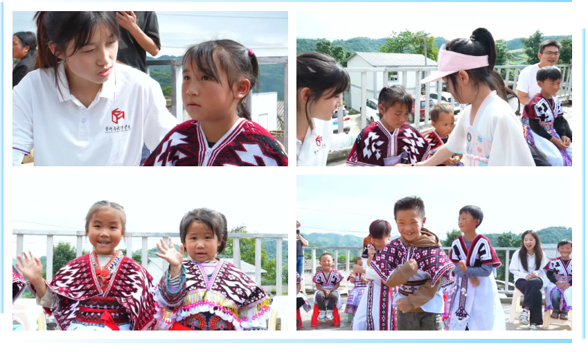 8月5日,“很高兴认识你”乡村教育第8期活动在玉碗镇老街村开展,实践团师生和员工共同向参与活动的孩子们捐赠了文具用品。并现场和孩子们亲密互动,大手拉着小手,共同围绕“民族团结”“乡村教育”等主题作画,给大家带来一次全新的艺术之旅,愿爱如阳光般照亮孩子们的成长之路,共同绘制中华民族团结的绚丽篇章。
