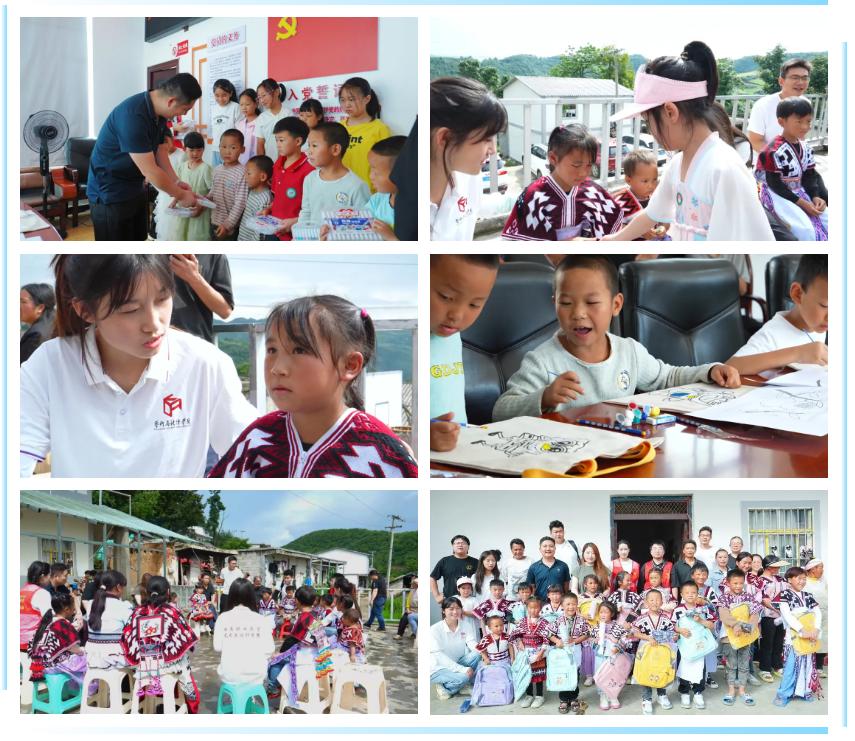 实践团成员精心准备并为孩子们赠发了文具礼包,带领孩子们绘画创作,以色彩为桥,共绘民族团结的宏伟画卷。